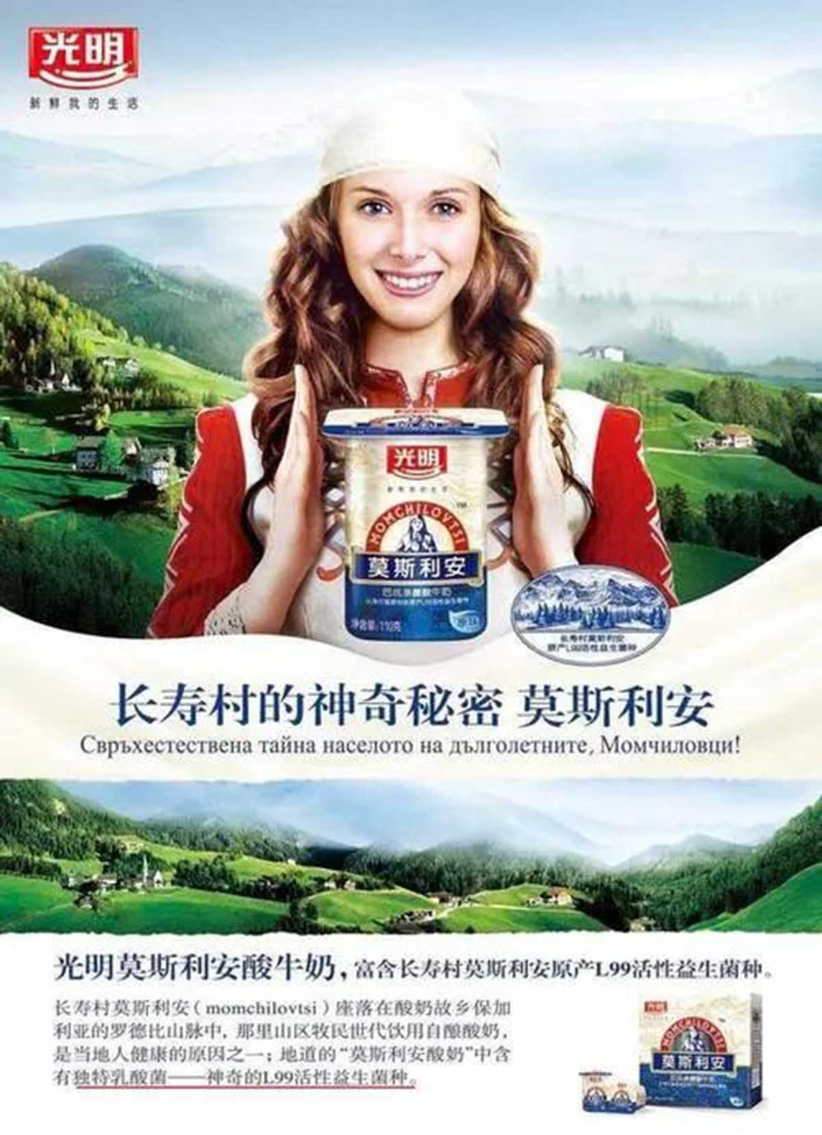 光明旗下高端酸奶品牌莫斯利安,名字源于世界5大長壽村之一的保加利亞莫斯利安村。諾貝爾生理暨醫(yī)學獎獲得者梅契尼可夫在旅行時途經(jīng)該村落,發(fā)現(xiàn)村中百歲老人眾多。經(jīng)研究發(fā)現(xiàn),村民每天都有飲用自釀酸奶的習慣,而他們的酸奶中含特有的活性益生菌L99。