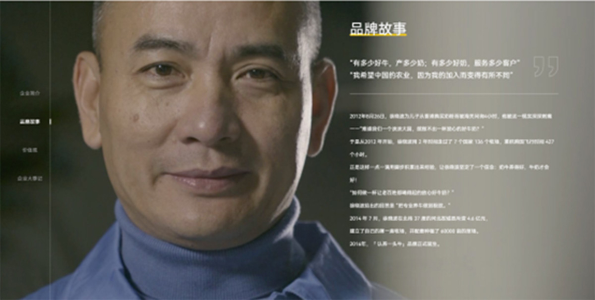 它的品牌故事與美贊臣類似,其創(chuàng)始人徐曉波因為在2012年為兒子從香港購買奶粉,被海關(guān)問詢了4個小時,被泱泱大國產(chǎn)不出一杯放心奶的現(xiàn)實所刺痛,于是用 2 年時間考察了7 個國家 136 個牧場,最終自建牧場打造品牌。