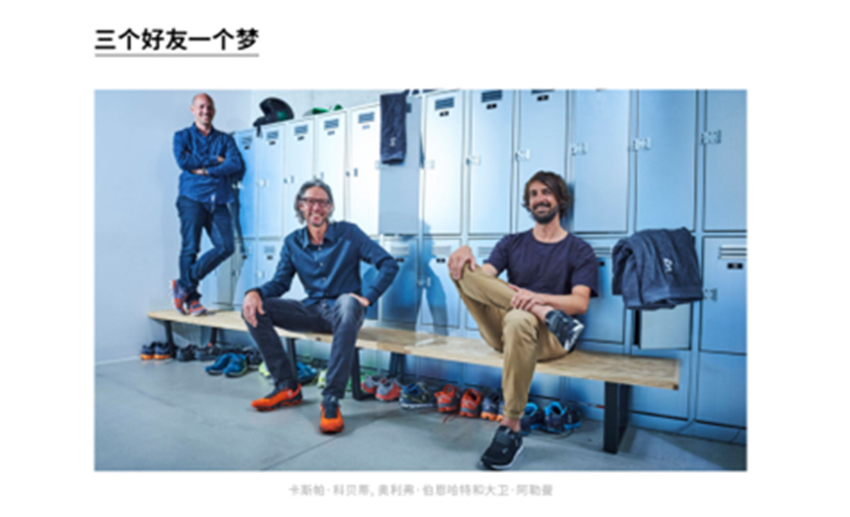 運動品牌On昂跑官方旗艦店的品牌故事一欄,由四部分構(gòu)成:源自瑞士、前鐵人三項賽冠軍運動員退役后創(chuàng)立、投資人及合作伙伴費德勒、CloudTec專利科技介紹。